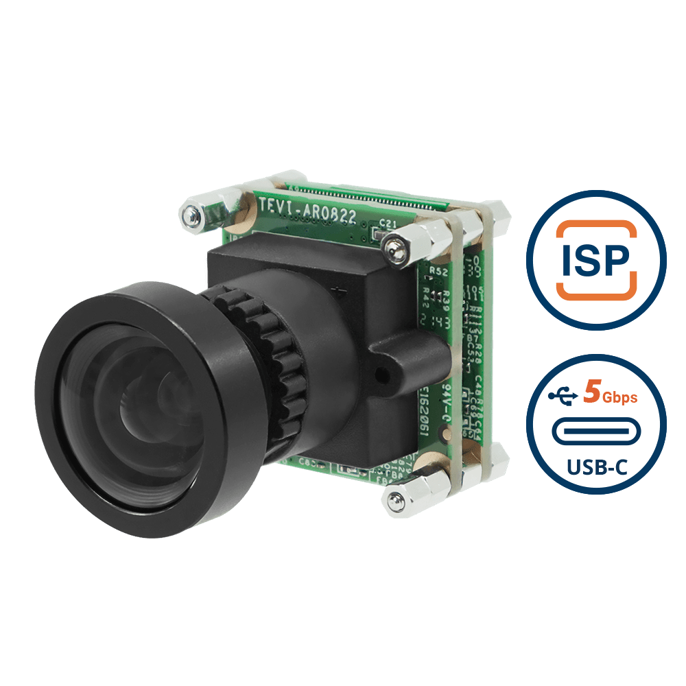 USB3 Type-C PCB Board Level Camera with onsemi AR0821 8MP 4K Color Rolling Shutter with Onboard ISP + 156 Degree M12 Lens with IR-Cut Filter
