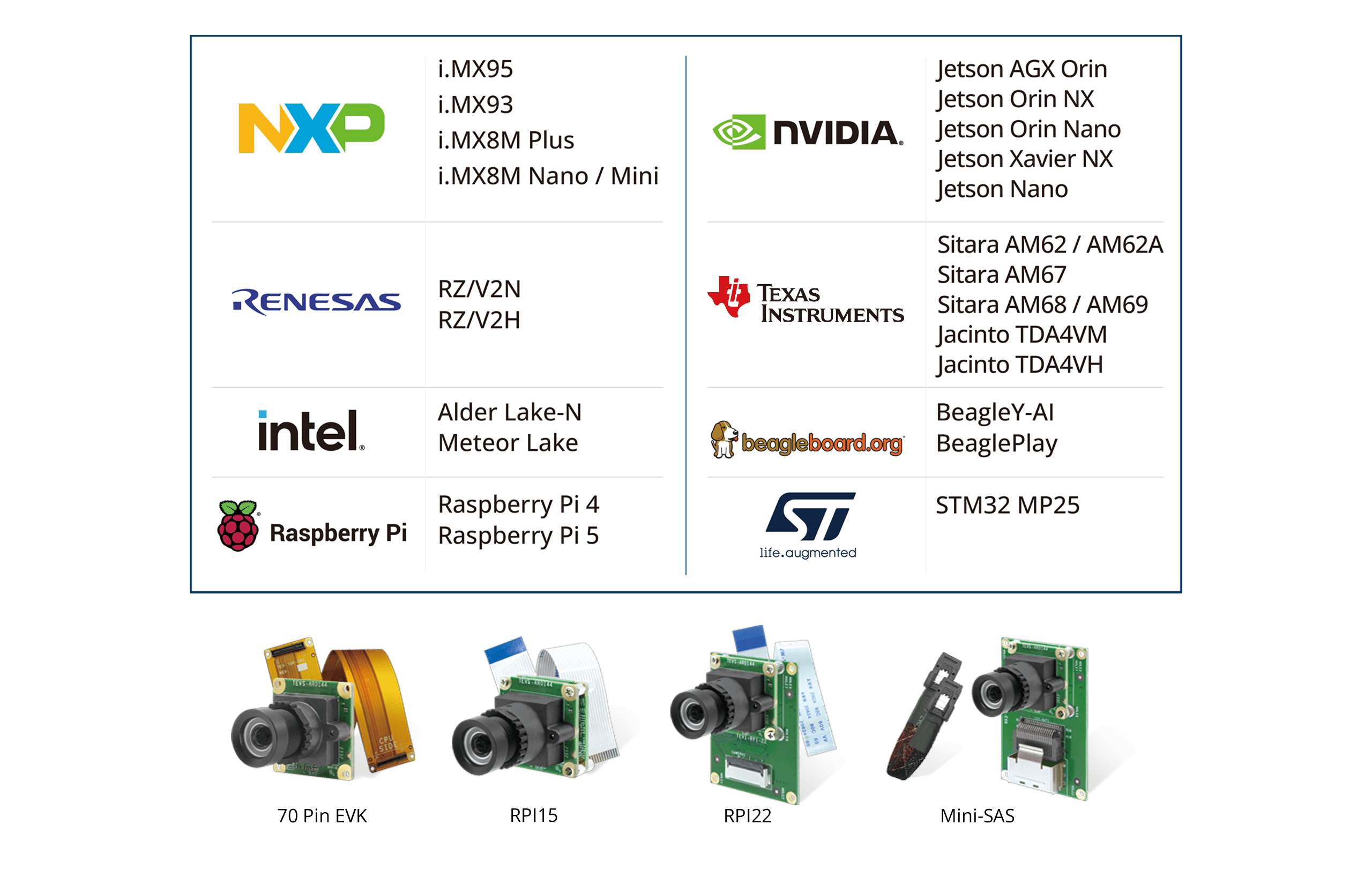 No matter which SOC you choose from NXP / ST / NVidia. As soon as it has MIPI-CSI2. You know. You can connect our cameras to it.