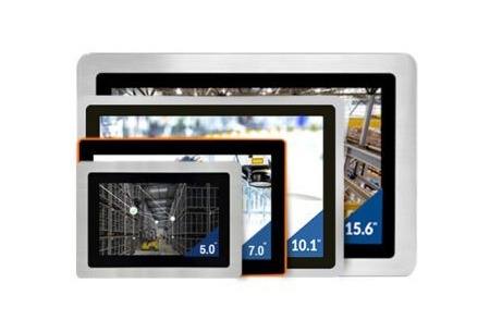 Fanless touch panel PCs with IP-rated displays and brushed aluminum front bezel, tailored for HMI, automation, and industrial environments.