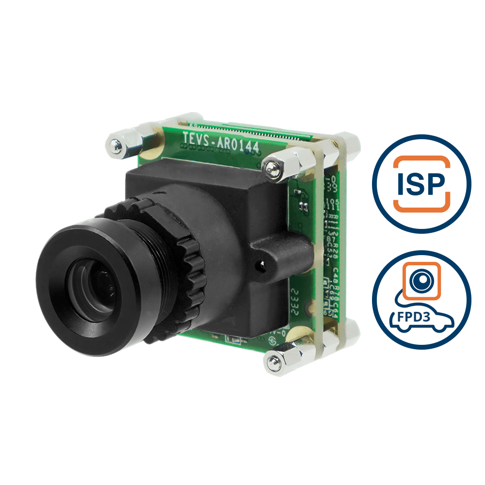 FPD-Link III PCB Board Level Camera with onsemi AR0144 1MP Color Global Shutter with Onboard ISP + 33 Degree M12 Lens with IR-Cut Filter