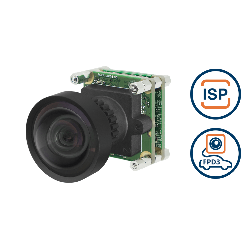FPD-Link III PCB Board Level Camera with onsemi AR0822 8MP 4K Color Rolling Shutter with Onboard ISP + 108 Degree M12 Lens with IR-Cut Filter