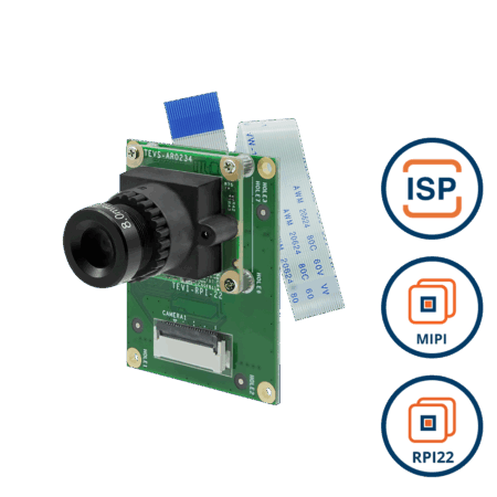 MIPI-CSI2 Sensor onsemi AR0234 2MP Full-HD Color Global Shutter with ISP + 32 Degree M12 Lens with IR-Cut Filter + RPI 22 Pin Converter and Flex PCB