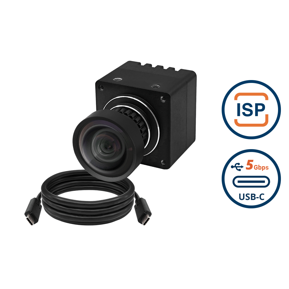 USB3 Type-C Aluminium Enclosed Camera with onsemi AR0821 8MP 4K Color Rolling Shutter with Onboard ISP + 119 Degree M12 Lens with IR-Cut Filter + Incl. 1 Meter USB C Cable